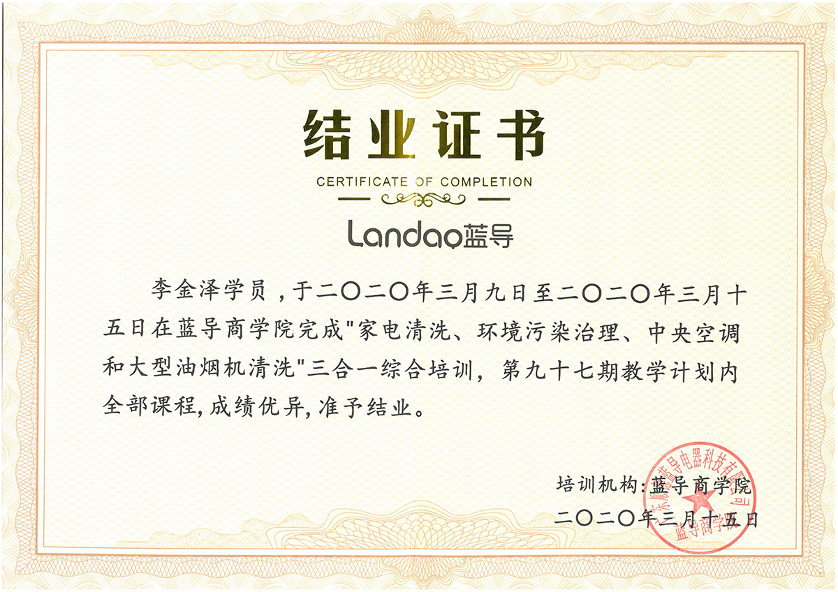 水系統(tǒng)、家電清洗培訓(xùn)證書